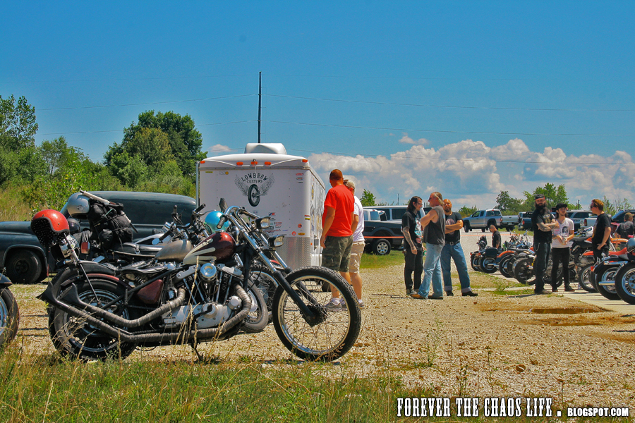 This weekend by far was one of the raddest weekends this year. Friday, I got to party with the O.O.C crew. Saturday, hung out with the wifey all day, then partied at Jarrett and Kerry's. Slip in Die V2 was the best thing I have ever witnessed. Sunday, woke up early met back with Jarrett and Kerry and we rode 6 deep to the Lowbrow Customs Swap and Meet. Tons of gnarly bikes, cheep parts, and free food and pop. Hung out with some really awesome people and met a ton more! Lowbrow really has something good going on for Northern Ohio! My favorite part of the day was they actual let us inside to see where they make their bikes and they had two Race bikes they just completed not to long ago. The 1300 cc actually won an award at Born Free this year. Shit was sick!!